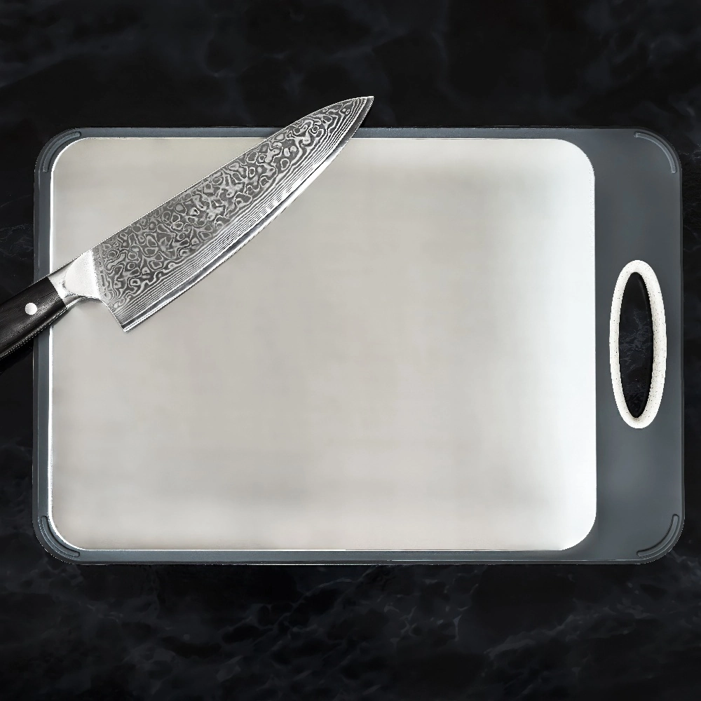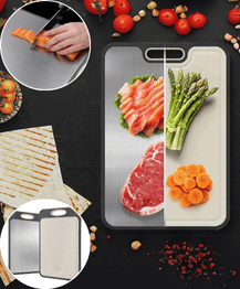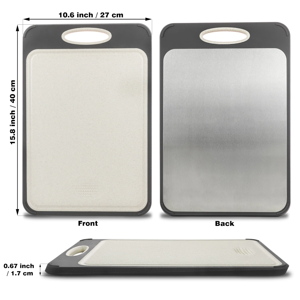 - DOUBLE-SIDED FUNCTIONALITY - Features a stainless steel side and a rice husk fiber side to prevent cross-contamination during food prep.